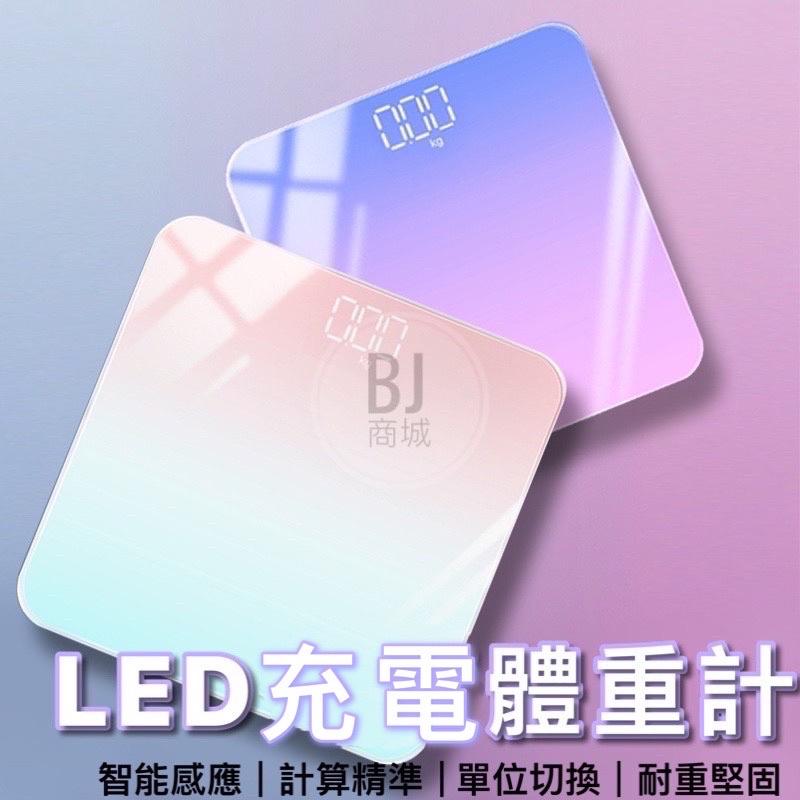 [BJ商城]LED智能體重計 智能漸層電子秤 USB充電 鋼化玻璃 圓角設計 秤重 秤重儀 禮物 母親節 情人節 萬聖節
