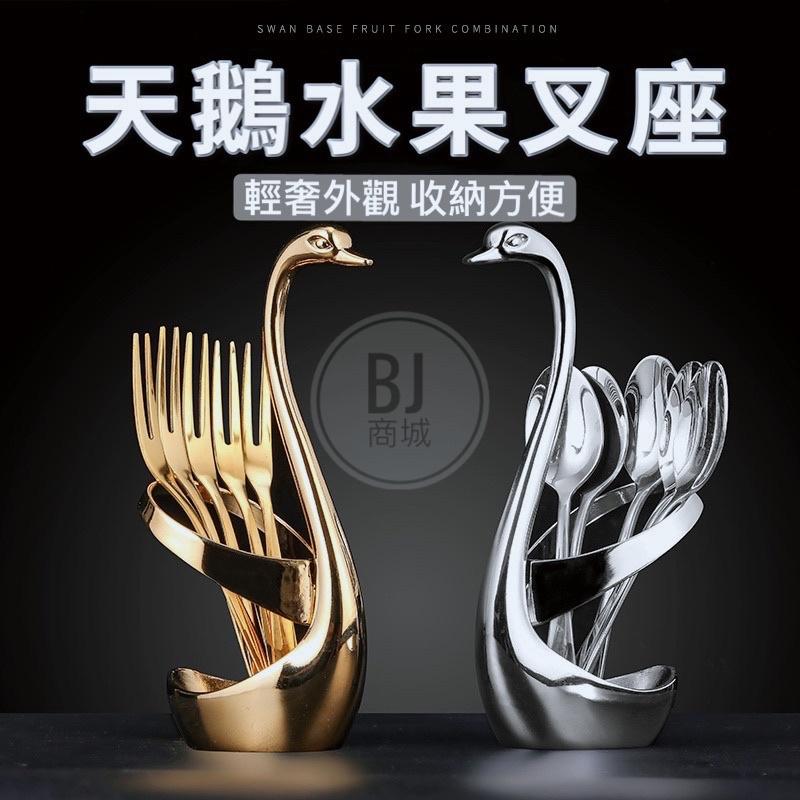 [BJ商城]🇹🇼304不鏽鋼 創意天鵝水果叉座組 天鵝餐具座 鋅合金天鵝餐具座底 天鵝水果叉座套