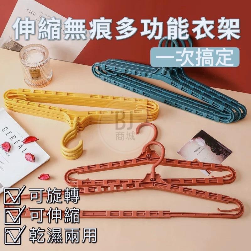 [BJ商城]台灣現貨🇹🇼 可伸縮無痕衣架 成人衣架乾濕兩用衣服晾衣架掛衣架