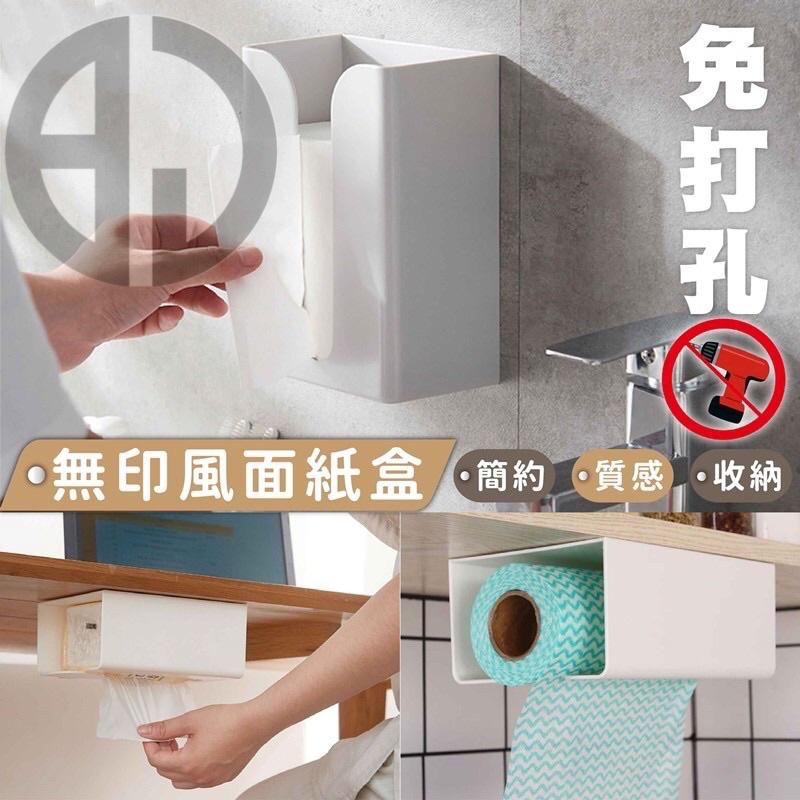 [BJ商城]台灣現貨🇹🇼 免打孔衛生紙盒 壁掛式紙巾架 簡約無痕貼抽紙盒