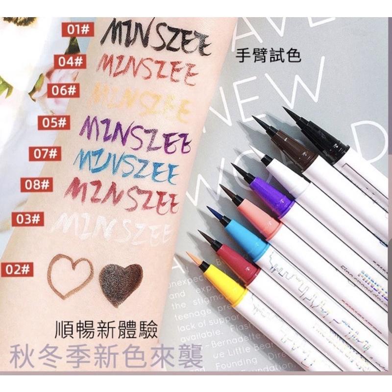 [BJ商城]台灣現貨🇹🇼 minshzee茗希芝彩色眼線筆不暈染棕色紫色紅色防水持久白色眼線液