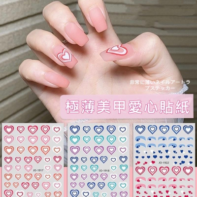 美甲愛心貼紙 雙拼法式甜心辣妹愛心帶背膠美甲貼紙指甲貼紙