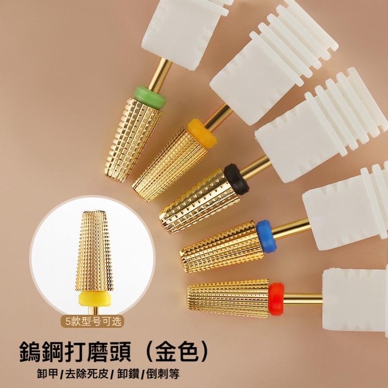 美甲多功能五合一鎢鋼金色打磨頭 卸甲磨頭 保養磨頭 修型 去死皮 卸鑽 平頭錐形 打磨機打磨頭通用