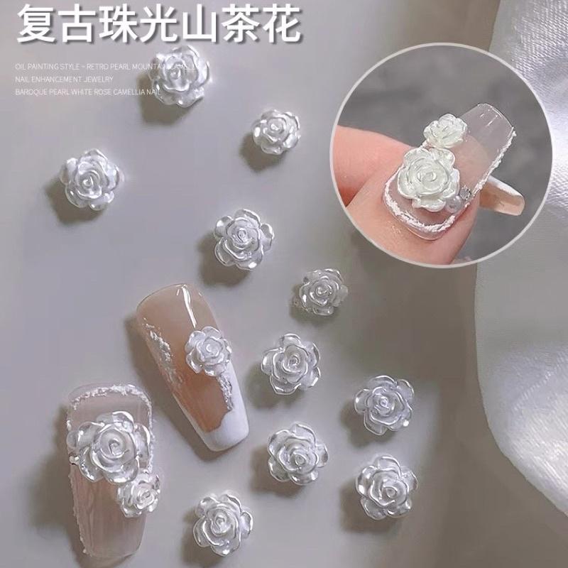 山茶花美甲2022網紅爆款日式珠光玫瑰花飾品質感光療指甲配飾