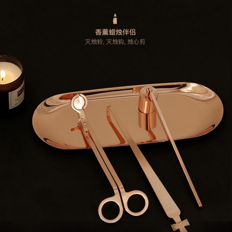 香氛蠟燭 滅燭工具四件套 ⭐️ 蠟燭剪 燭芯勾 滅燭罩 收納盤( 玫瑰金 質感啞光黑 )