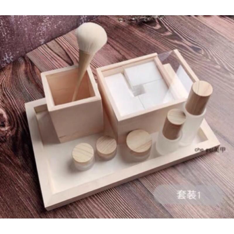 北歐原木收納盒 北歐風原木收納盒 棉片盒 托盤 粉尖刷 筆筒 小噴瓶 磨砂小圓瓶 套組