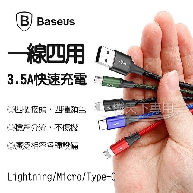Baseus倍思 一拖四充電線 MICRO/TYPE-C/ APPLE通用