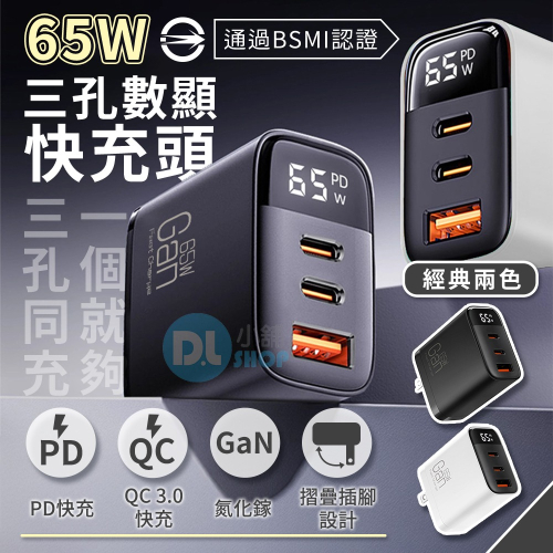 產品名稱:65W三孔數顯快充頭