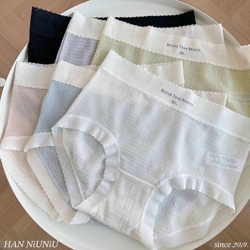 ʜᴀɴɴɪᴜ☺︎︎歐膩內褲系列|奢華蕾絲英文字格紋內褲 中高腰內褲 / 07105
