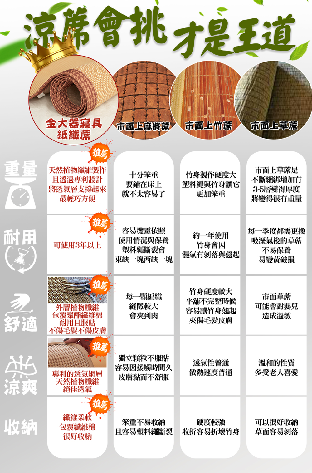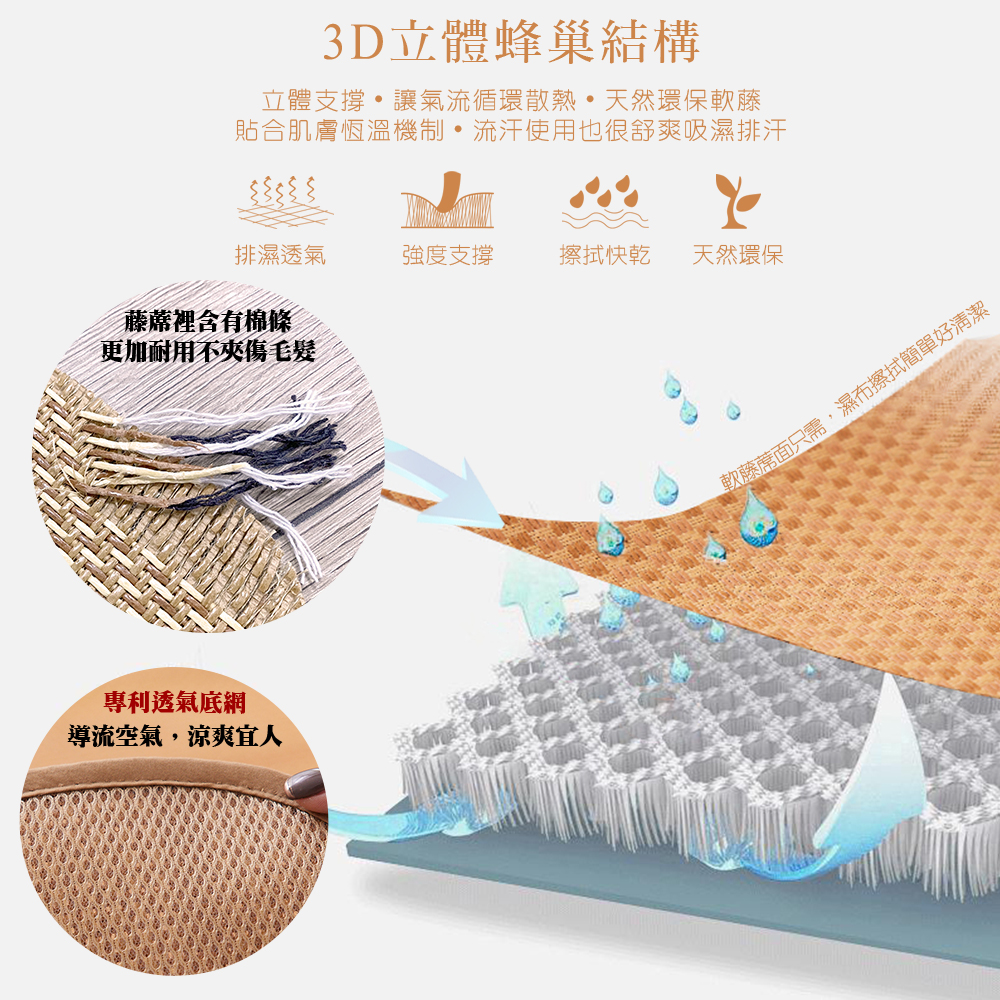 【金大器】頂級格紋透氣紙纖蓆-厚款【可訂做】3D 透氣散熱 藤蓆竹蓆 夏季涼蓆 紙纖涼蓆 透氣涼蓆 台灣製造