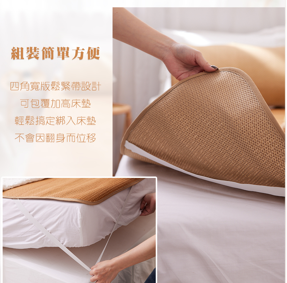 - 紙纖蓆面柔軟細緻工匠不夾毛髮不傷皮膚