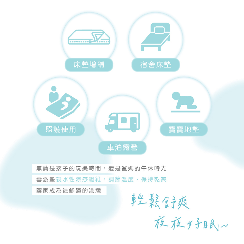 - 久睡無壓痕、出汗不黏身,避免躺臥時背部悶熱