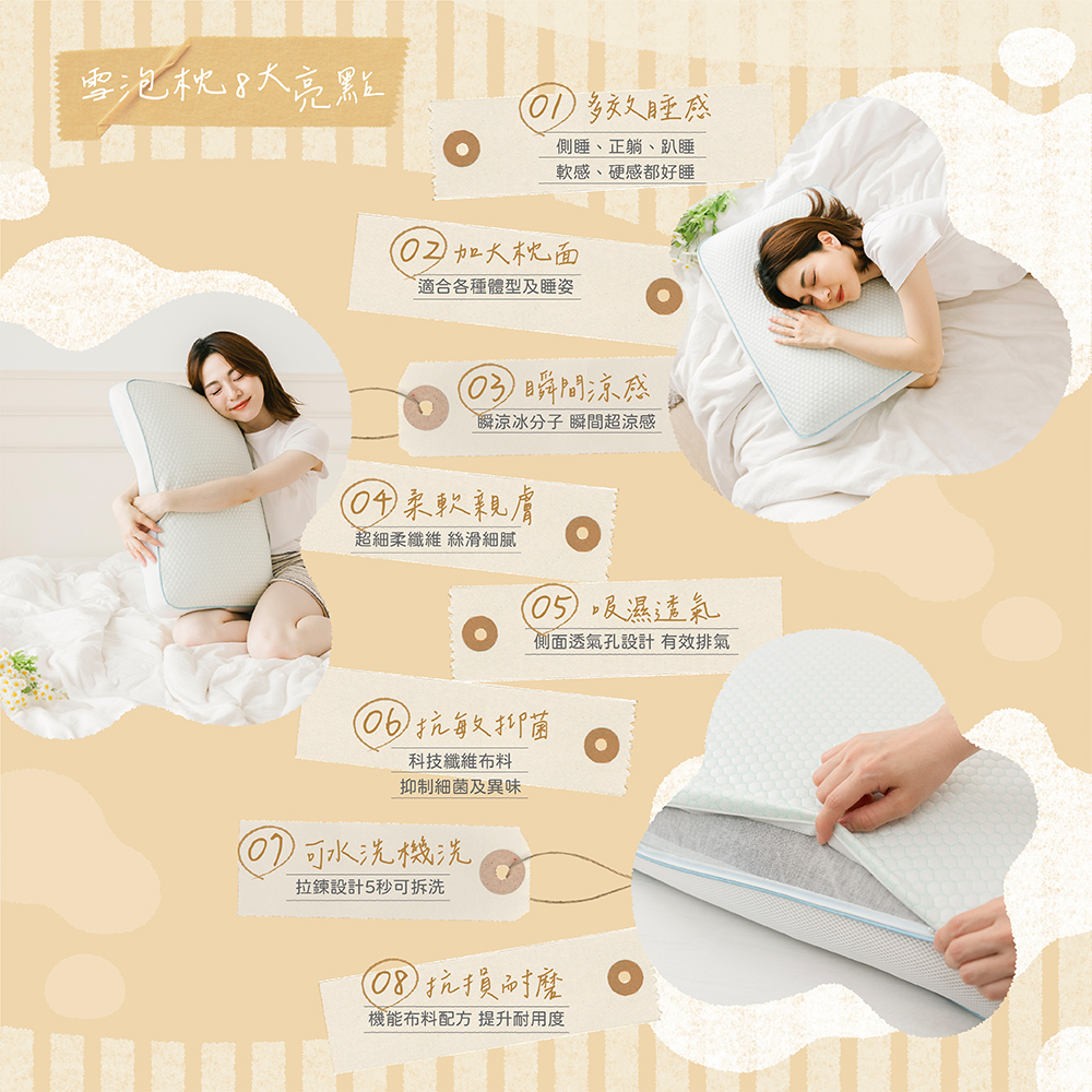 - 雲朵般柔軟回彈 貼合頭頸柔軟承托頸椎