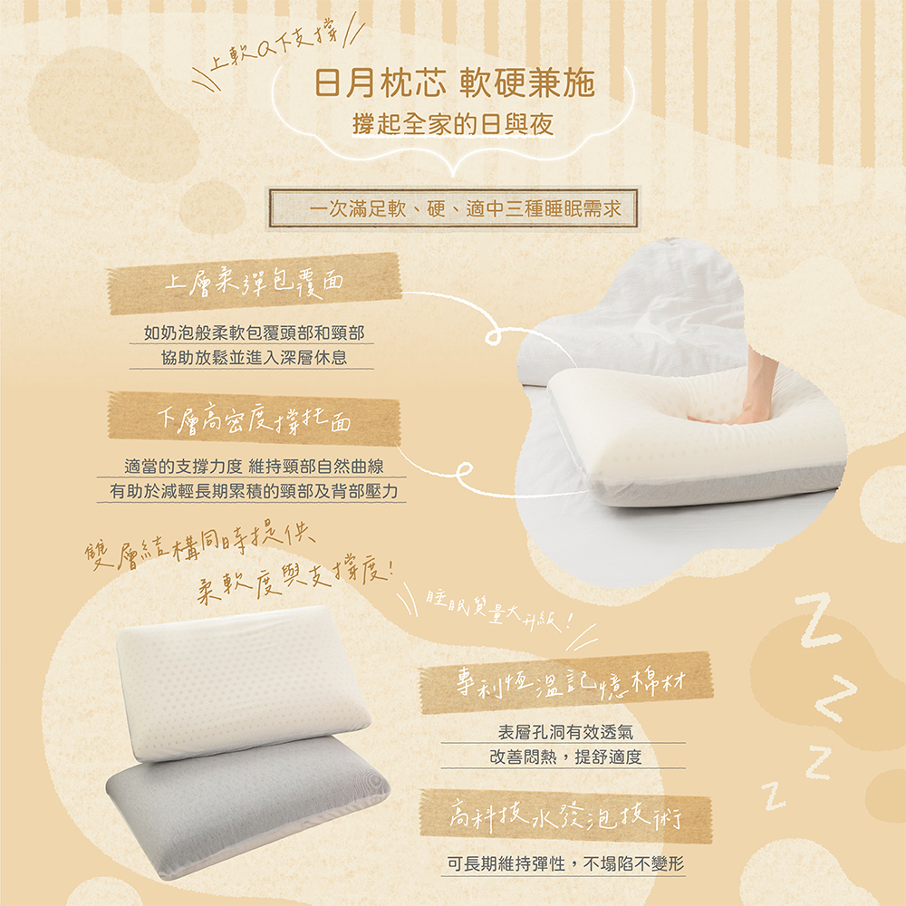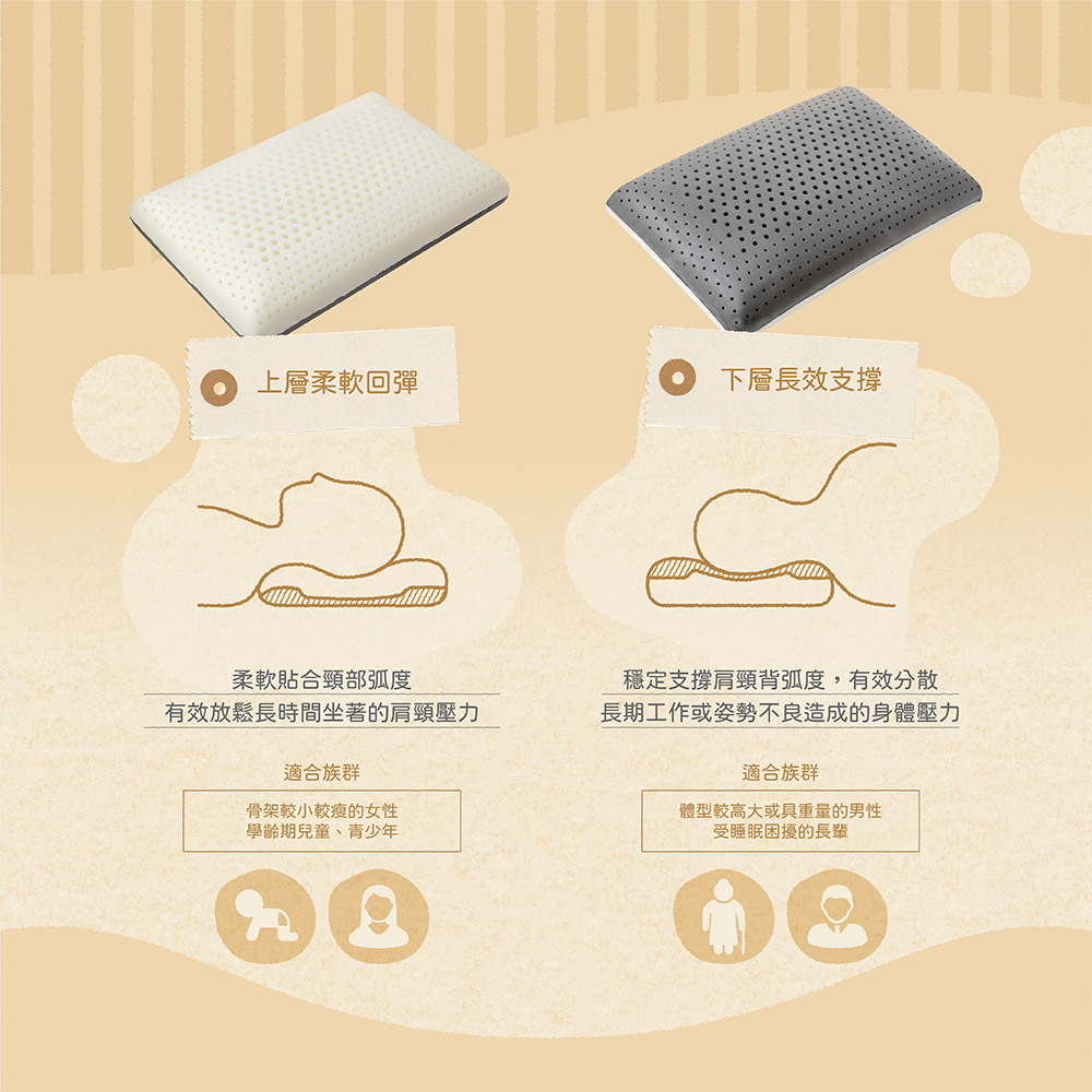 - 枕面寬大舒適 側睡仰睡完美支撐 滿足各種睡姿