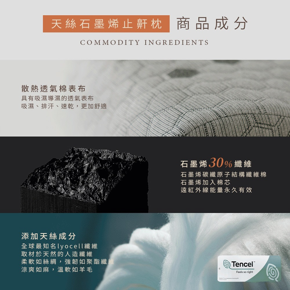 【金大器】天絲石墨烯止鼾枕 枕頭 枕芯 台灣製造 紅外線 恆溫 類韓國枕 舒眠枕 止鼾枕 人體工學 肩頸紓壓
