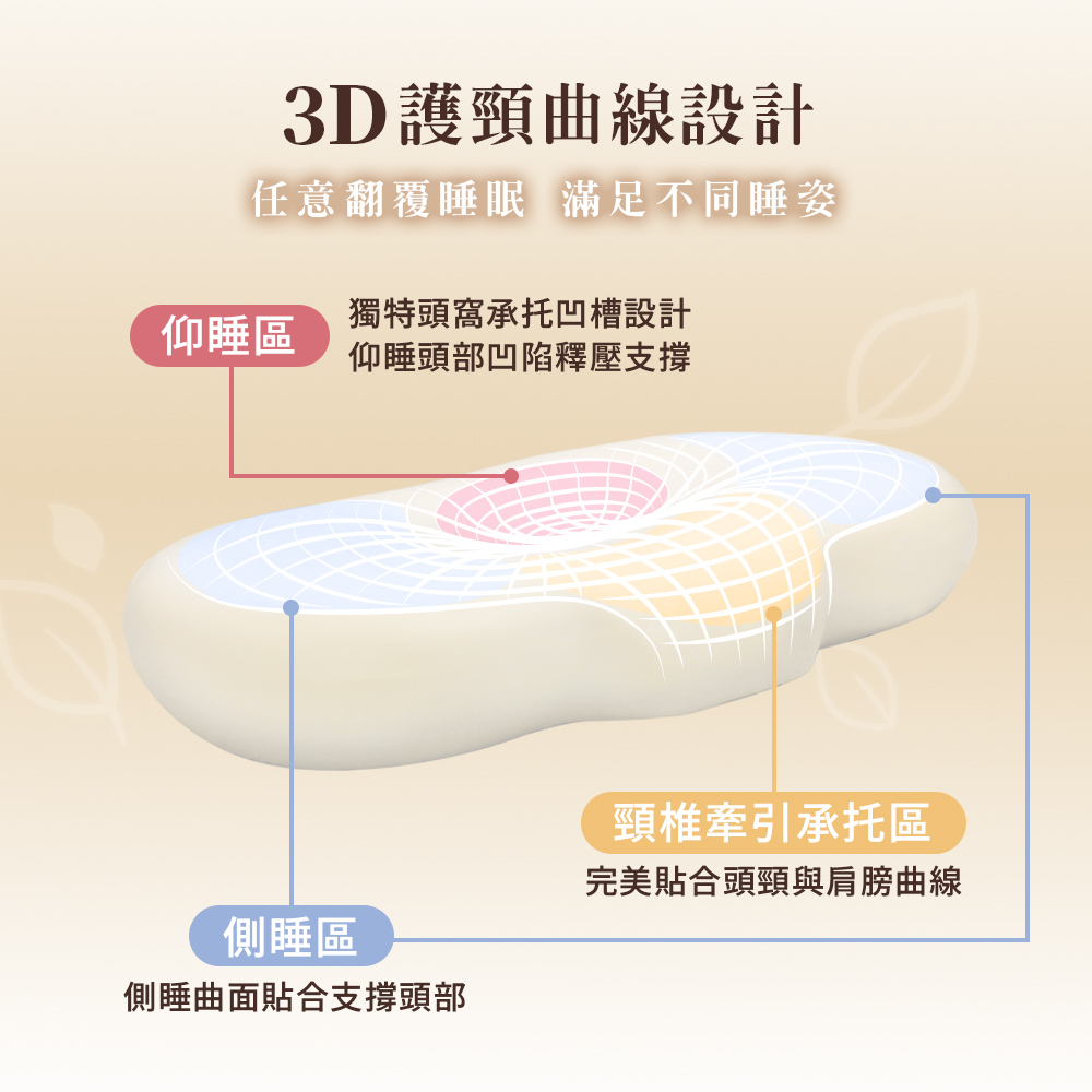 【金大器】3D曲線天絲護頸減壓枕 全方位釋壓承托 分區零壓力 助眠枕 止鼾枕 雲朵枕 釋壓枕 眠豆枕 太空枕
