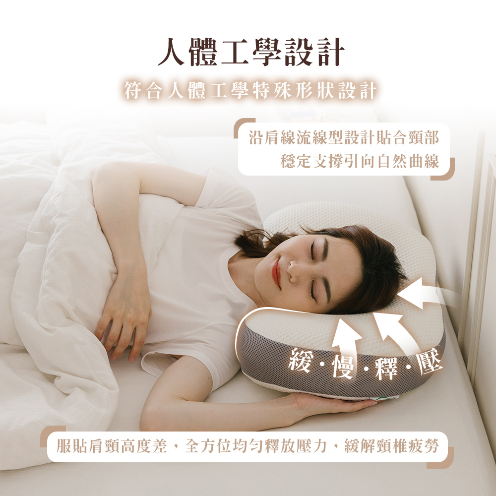 - 人體工學黃金舒緩曲線,完美貼合頸椎