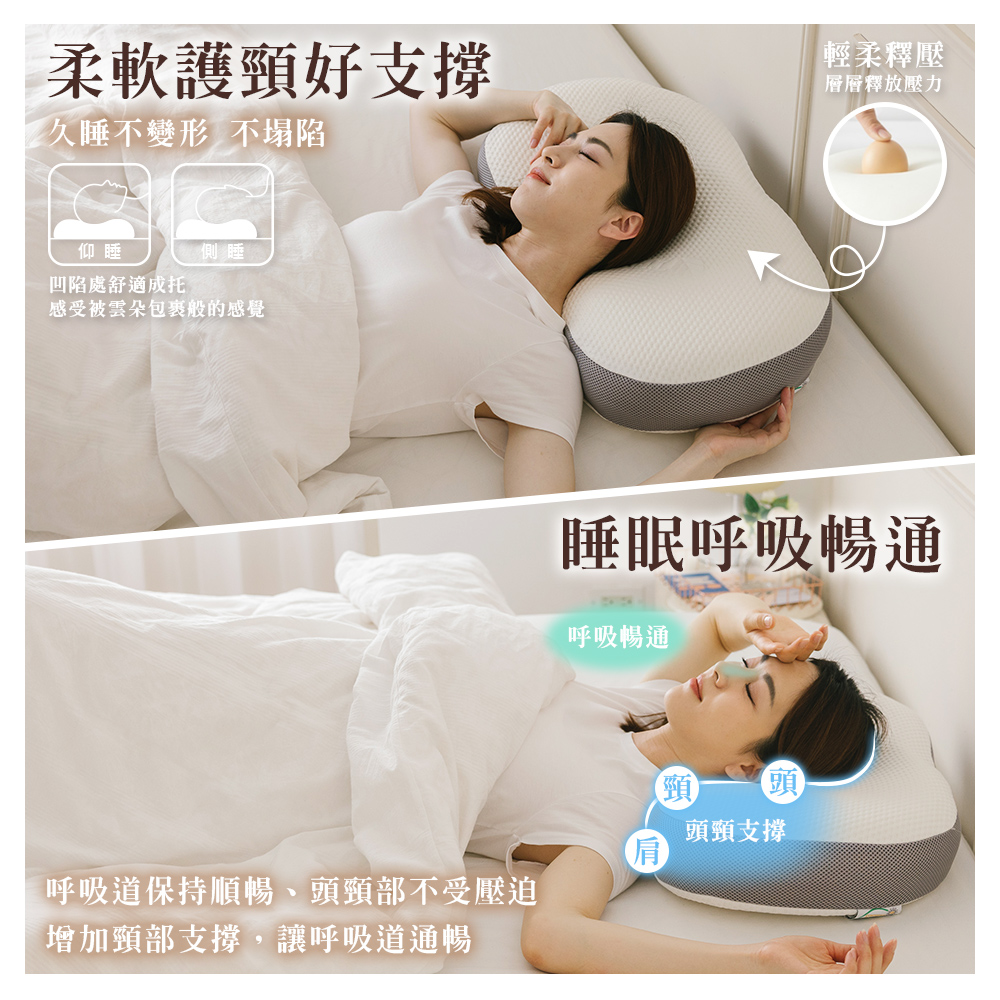 - 飽滿釋壓仰睡側睡肩頸放鬆貼合頸椎生理曲度