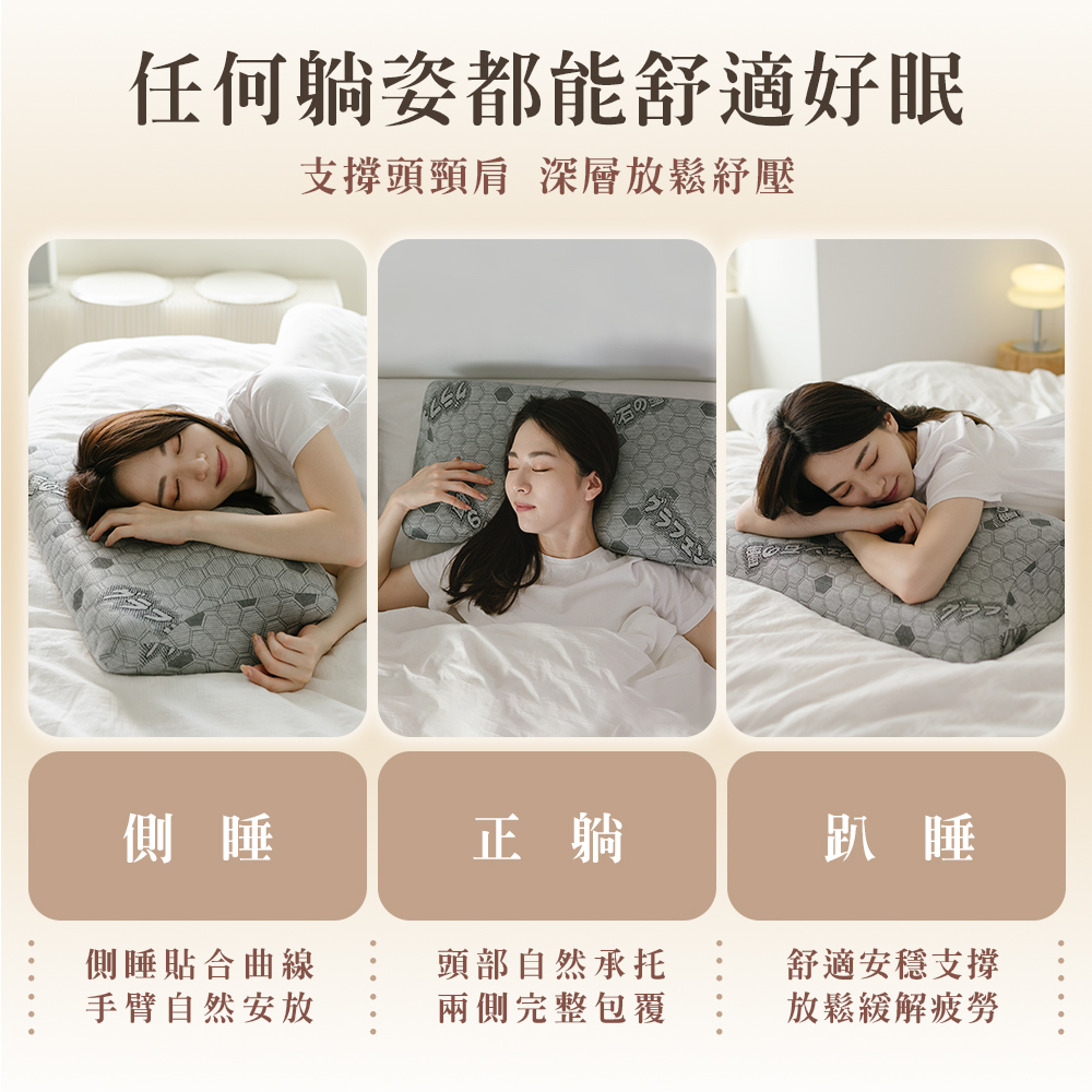 -零壓力材質,無反作用力不會影響大腦睡眠中樞神經.淺睡者的最佳選擇。