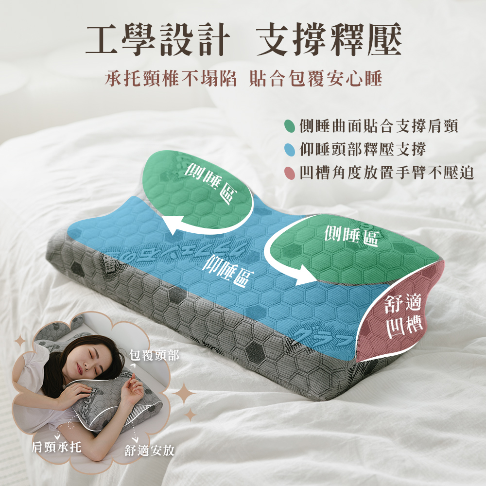【金大器】天絲石墨烯蝴蝶枕 護頸型 台灣製造 枕頭 枕芯 記憶枕 肩頸紓壓 蝶型枕 韓風枕頭