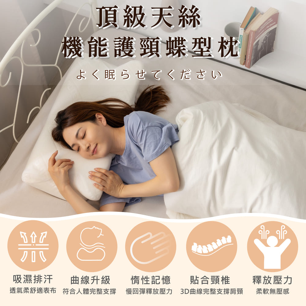 【金大器】天絲護頸型蝶型記憶枕 護頸型 記憶枕 枕頭 枕芯 記憶棉枕 防蹣抗菌 天絲機能枕 人體工學設計 蝴蝶枕