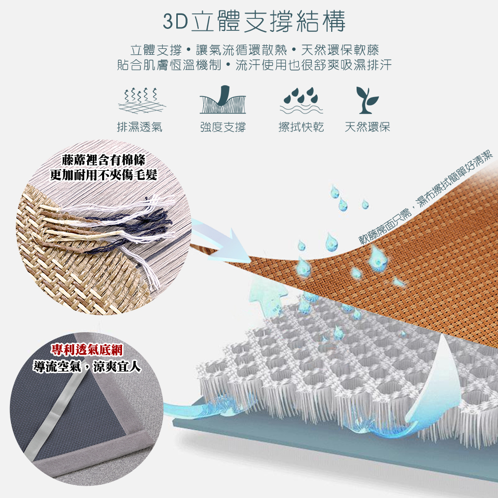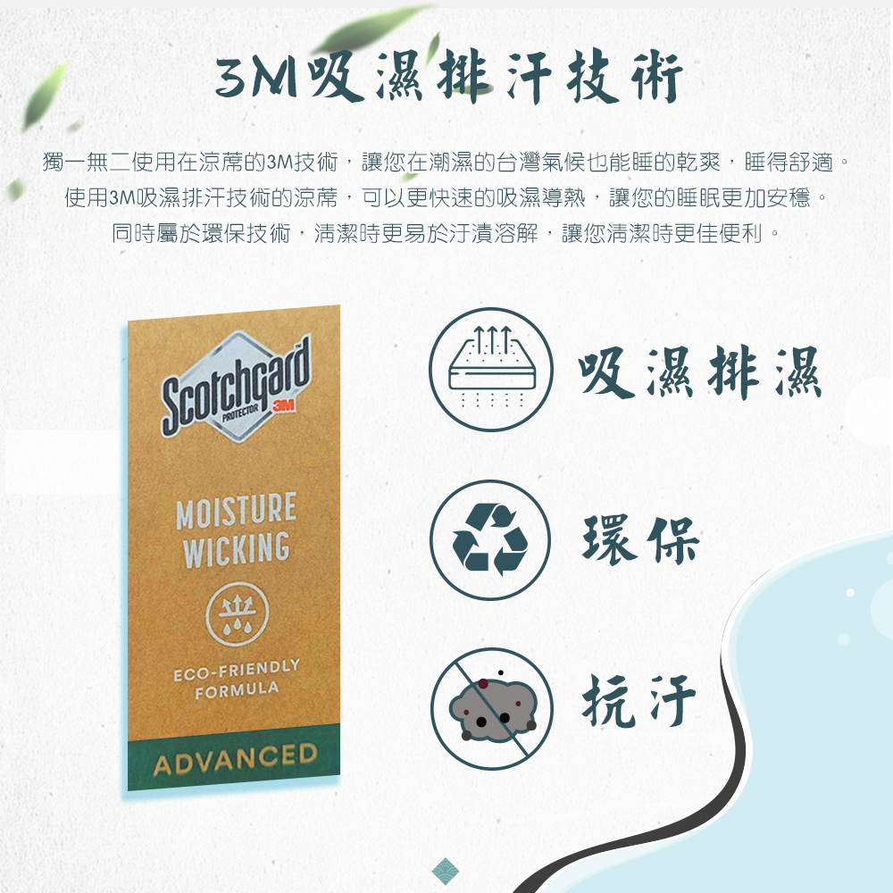 - 涼蓆應用3M吸濕排汗技術,好擦好去汙