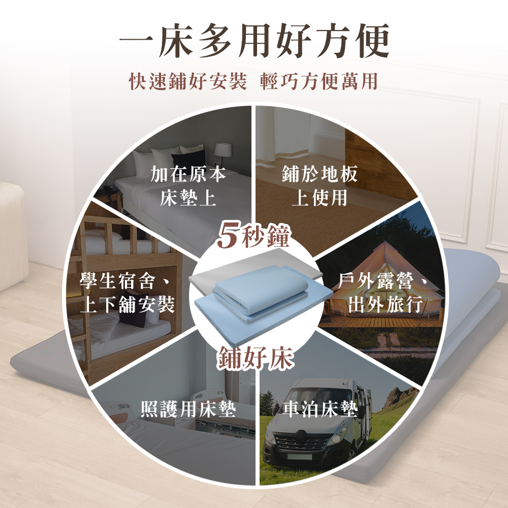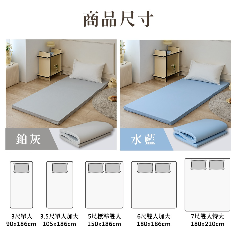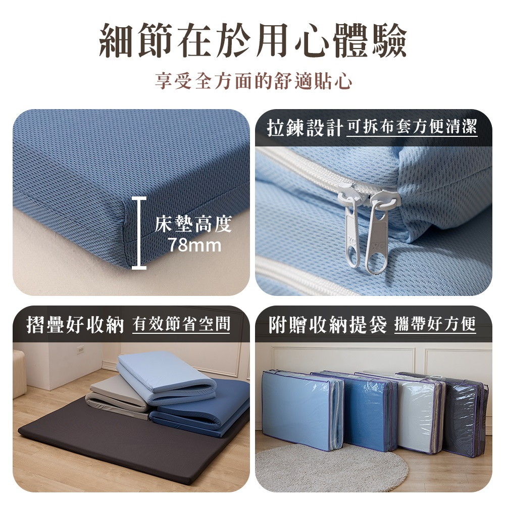 【金大器】7.8cm 輕量支撐記憶床墊-鉑灰 三折床墊 折疊床墊 睡墊 車用床墊 雙人床墊 汽車床墊 打地鋪睡墊