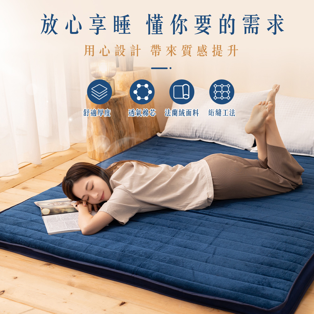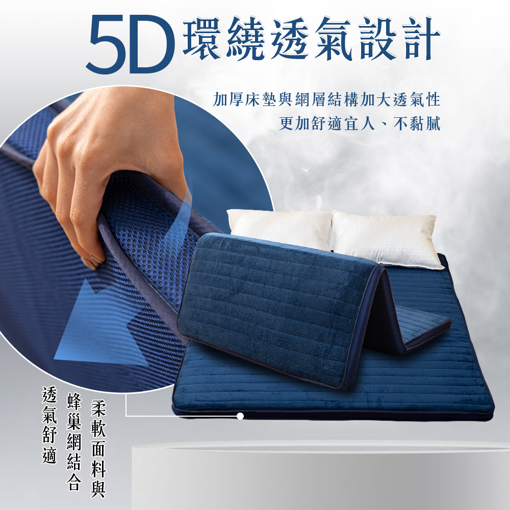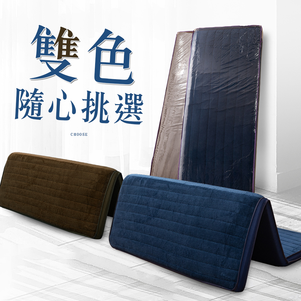 【金大器】5cm 冬夏兩用摺疊透氣床墊-穩重咖 法蘭絨表層 透氣纖維內芯 不塌陷不變形 學生床墊 日式床墊 遊戲墊