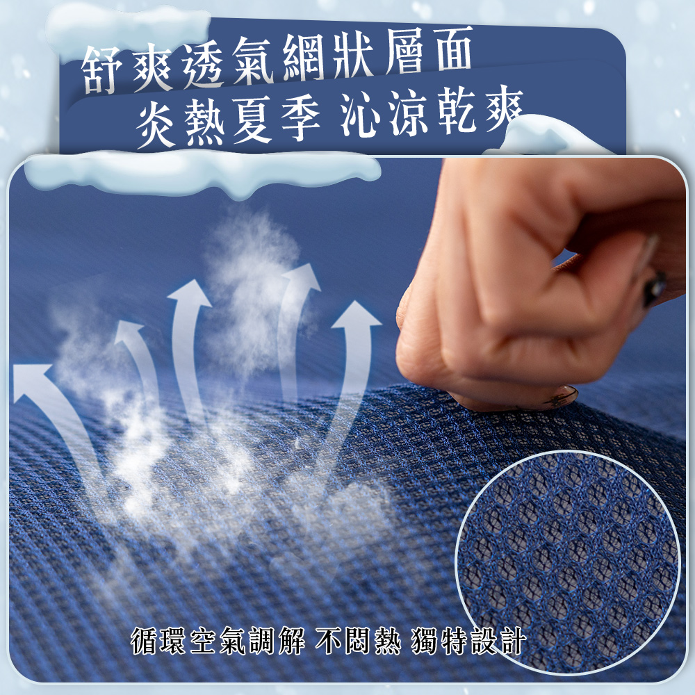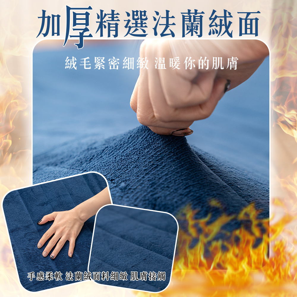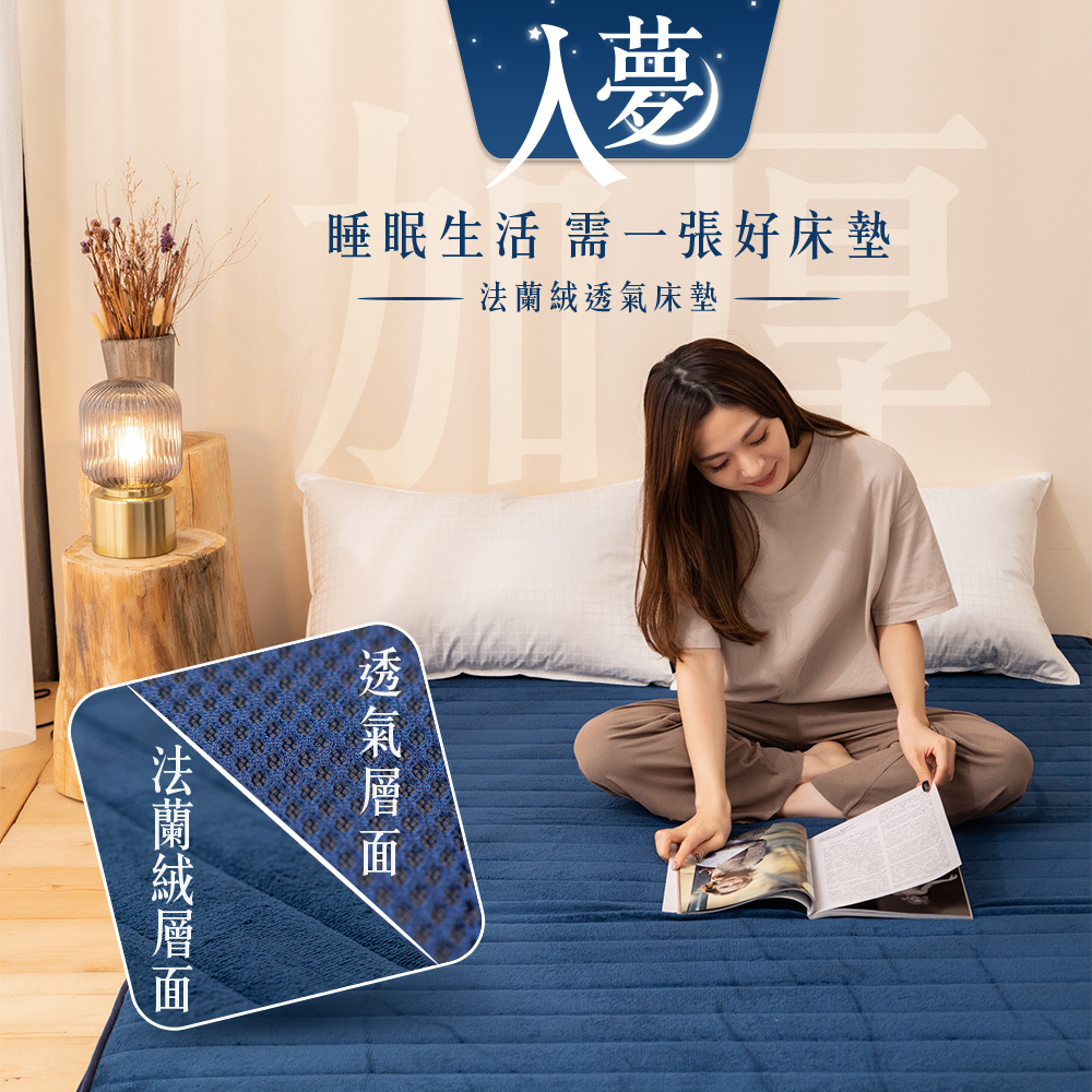- 一面法蘭絨質感面/另一面透氣網層