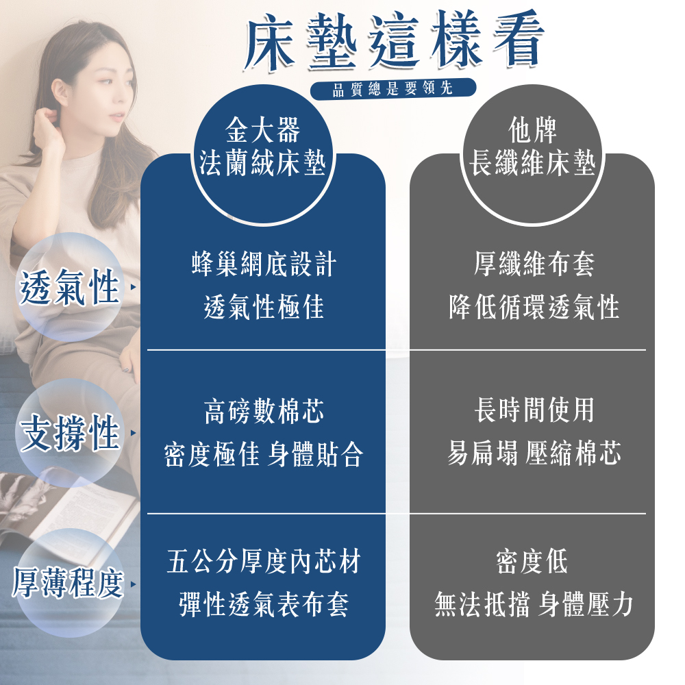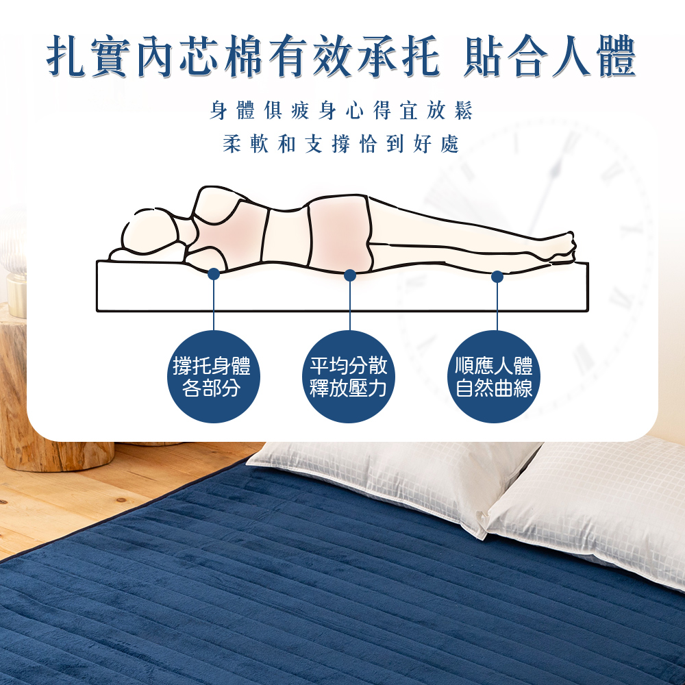 表布:100%聚酯纖維 (法蘭絨、蜂巢網層)