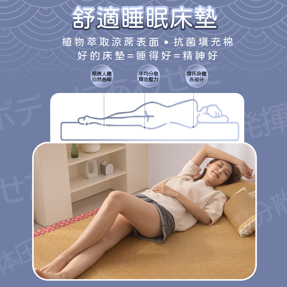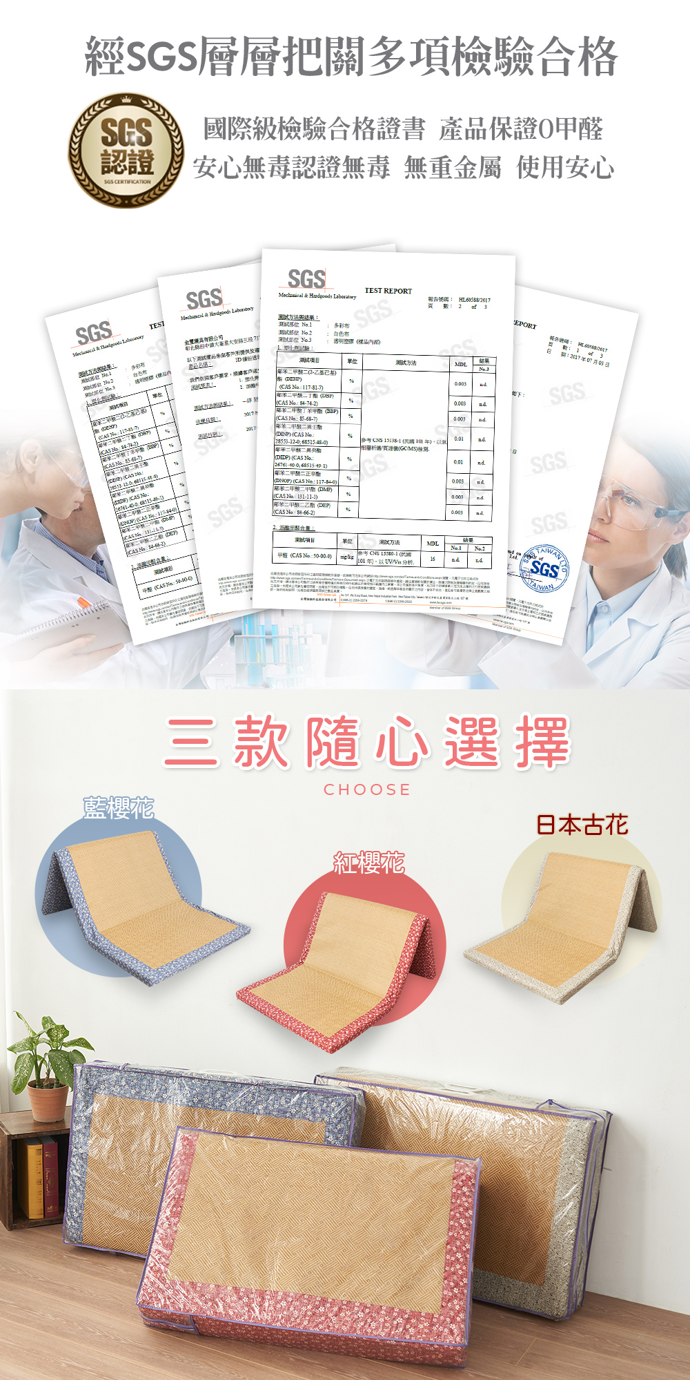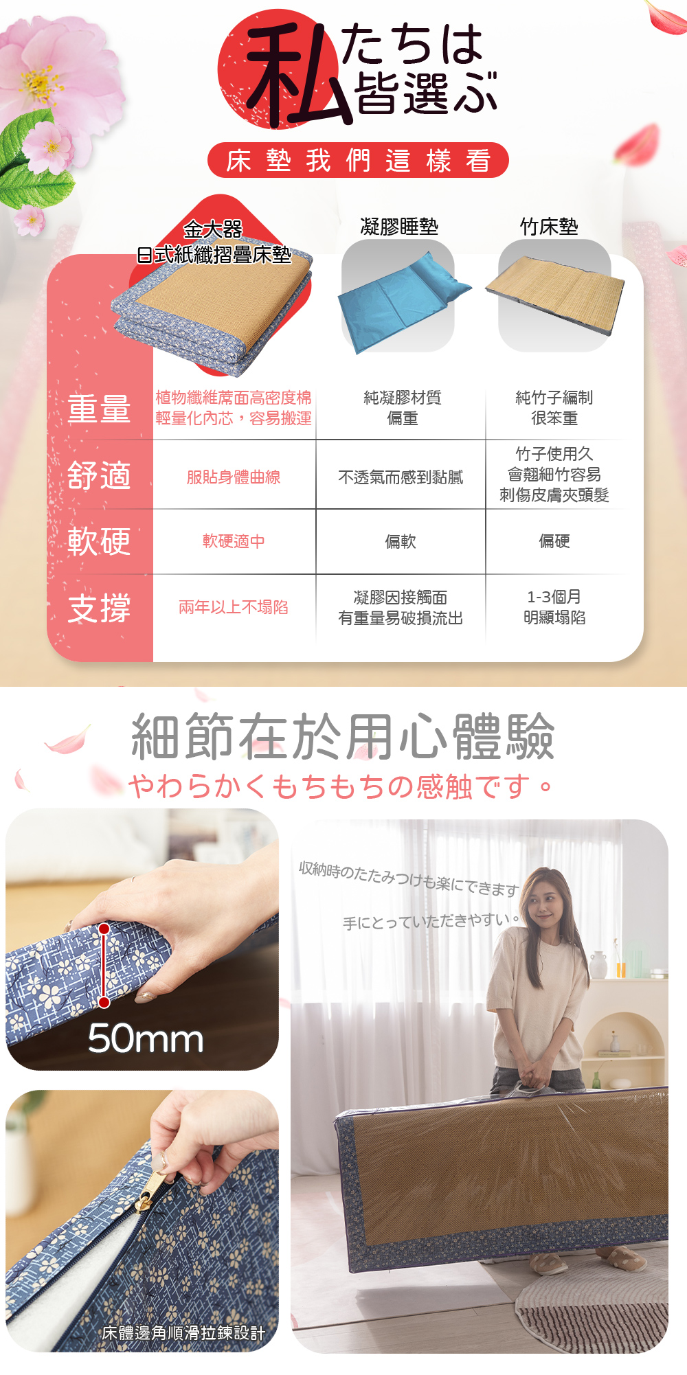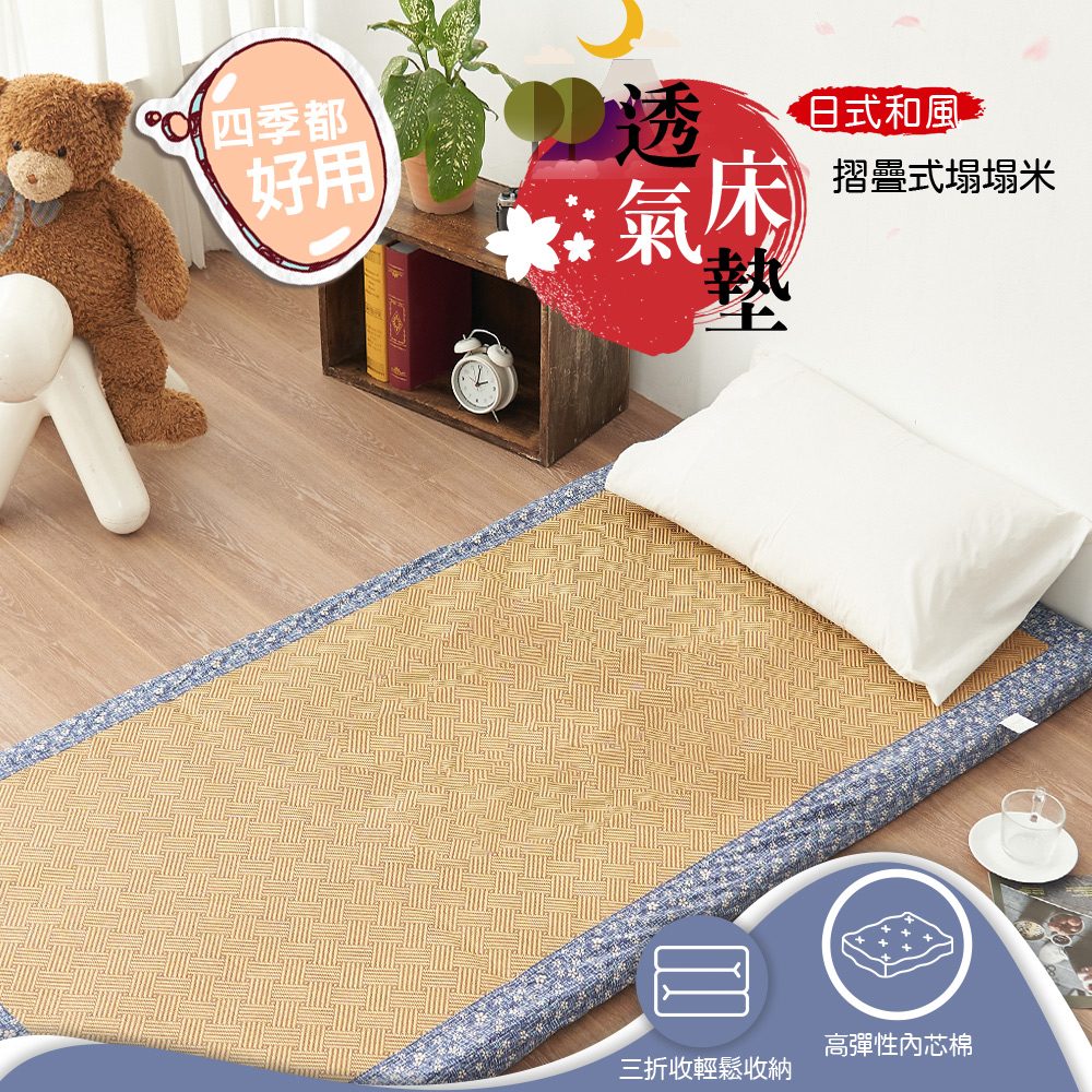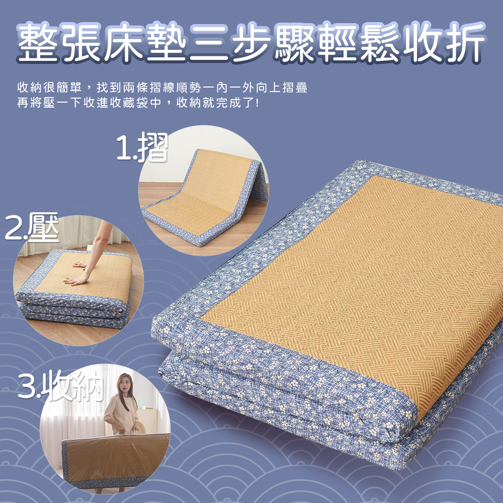 【金大器】日和風摺疊床墊-櫻花藍 三折床墊 塌塌米床墊 透氣床墊 涼蓆床墊 露營墊 學生住宿 租屋族 車用床墊