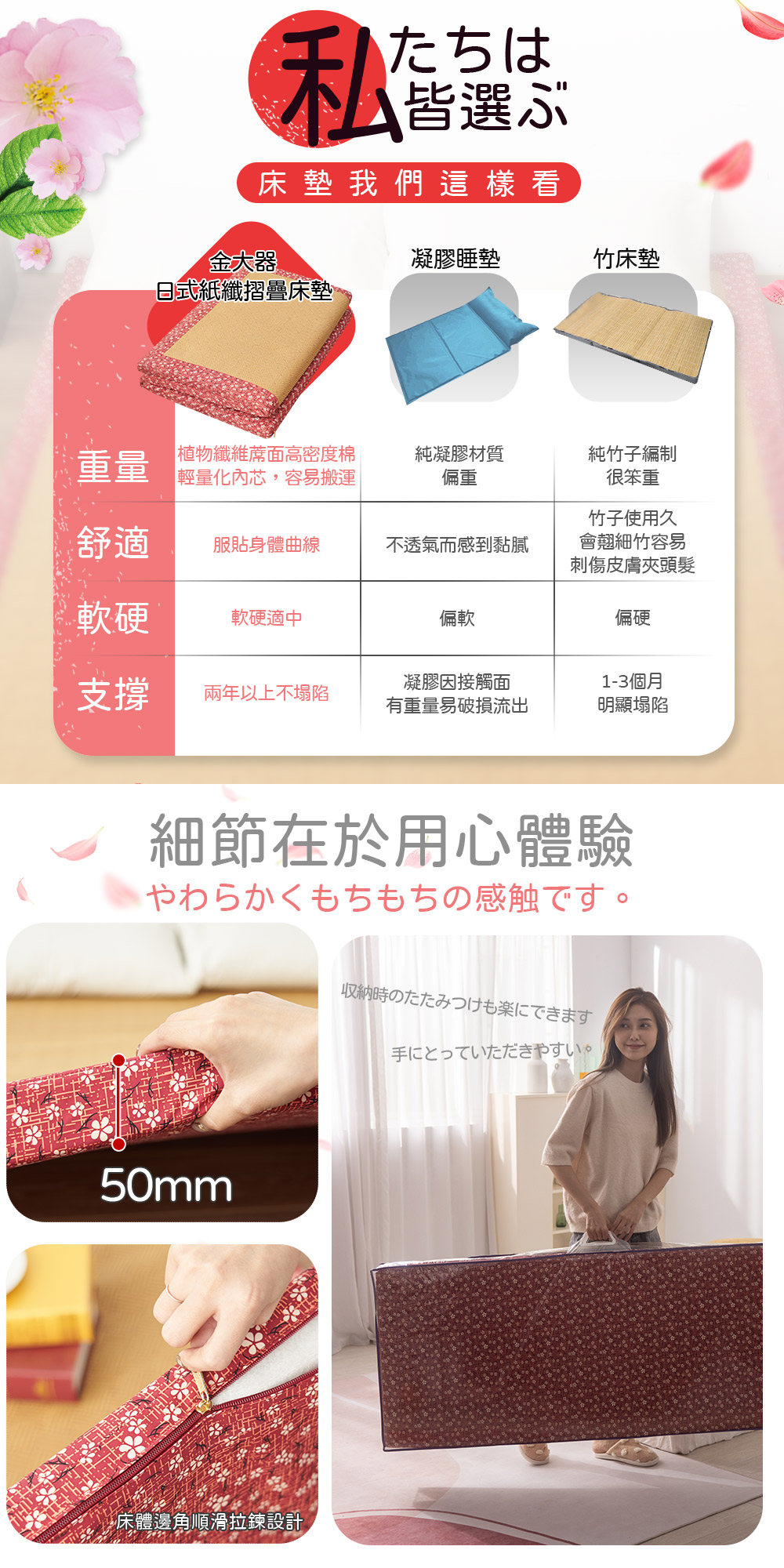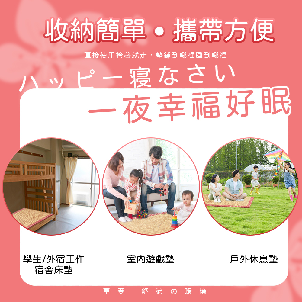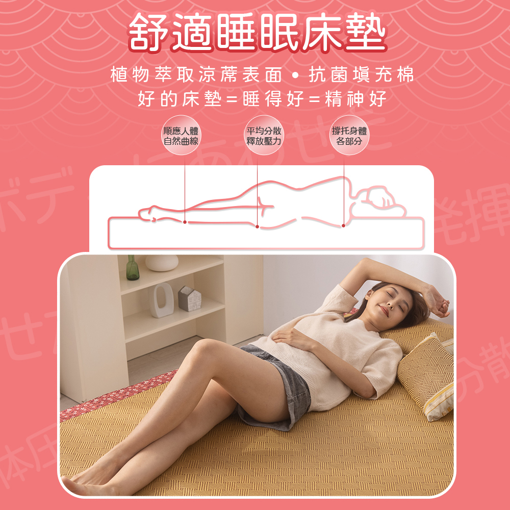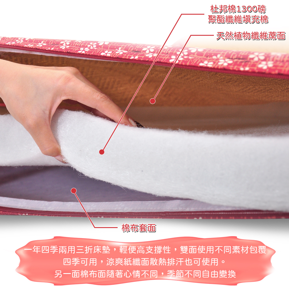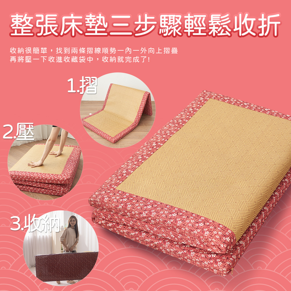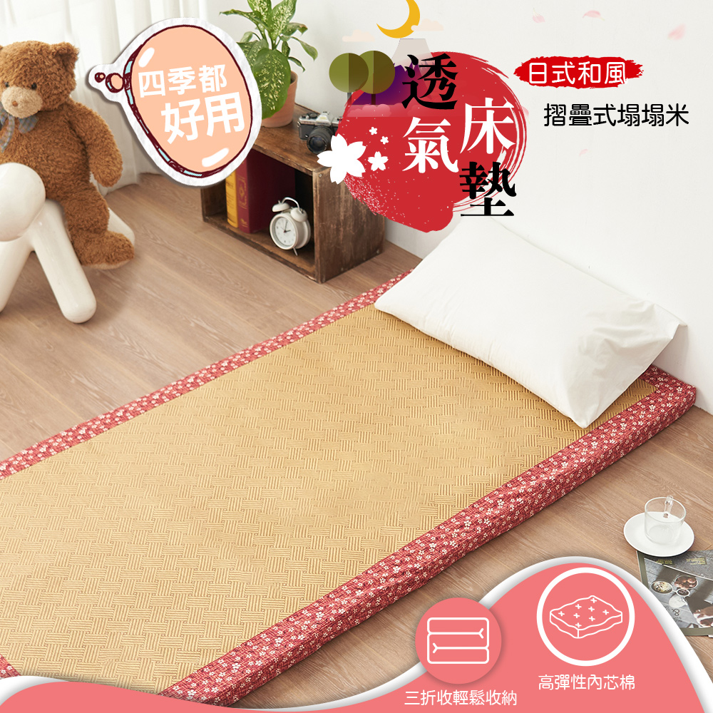 【金大器】日和風摺疊床墊-櫻花紅 三折床墊 塌塌米床墊 透氣床墊 涼蓆床墊 露營墊 學生住宿 租屋族 車用床墊