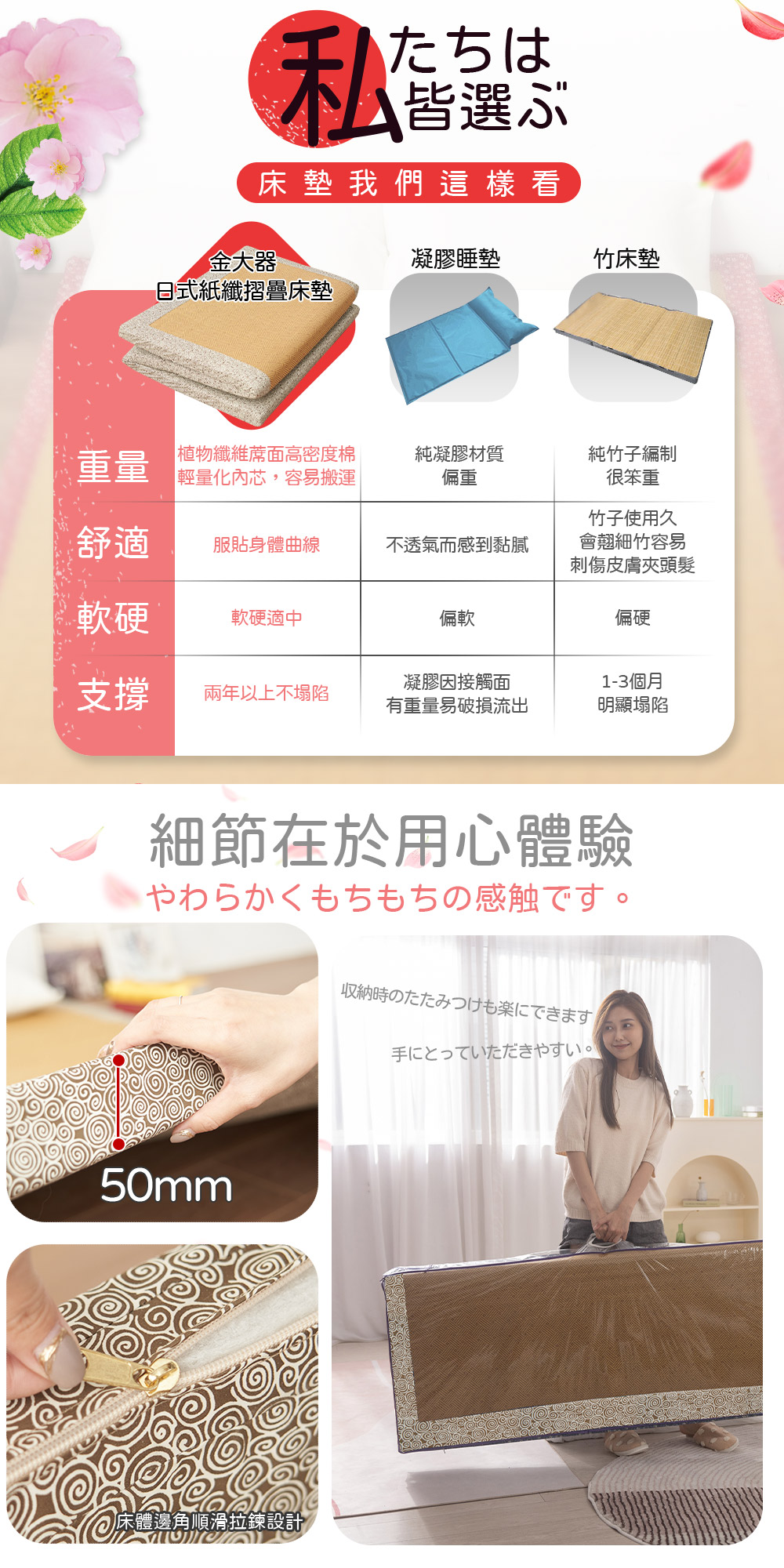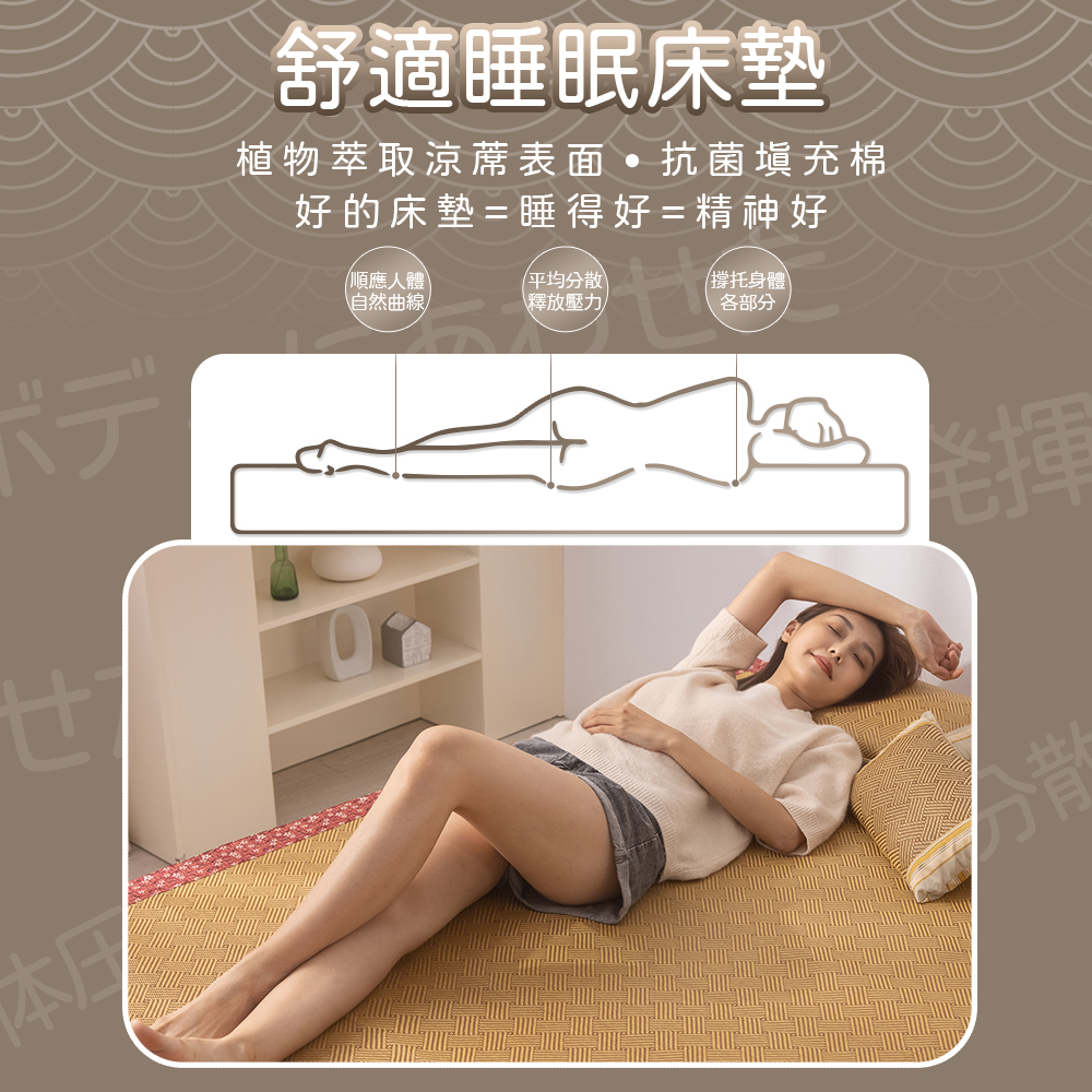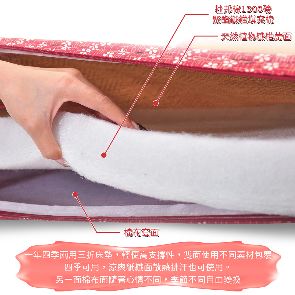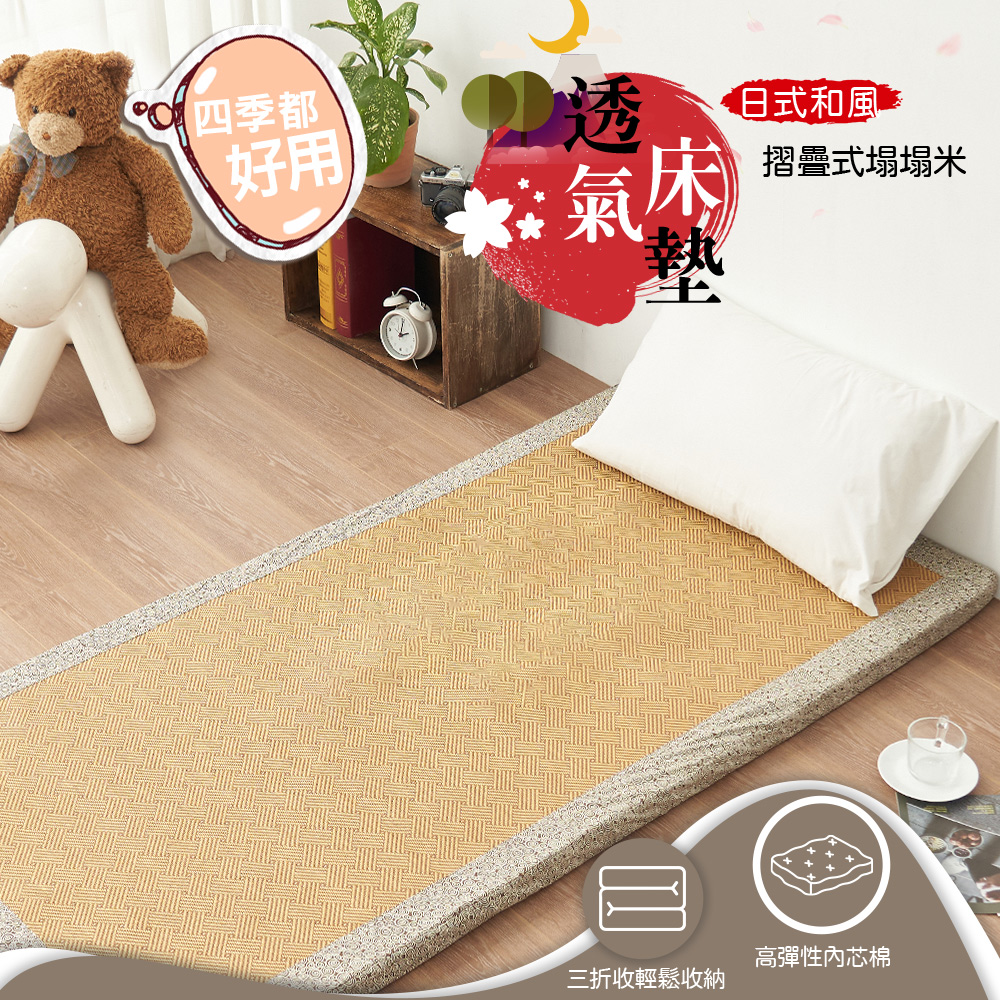 【金大器】日和風摺疊床墊-日本古花 三折床墊 塌塌米床墊 透氣床墊 涼蓆床墊 露營墊 學生住宿 租屋族 車用床墊