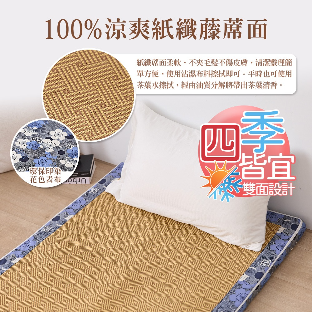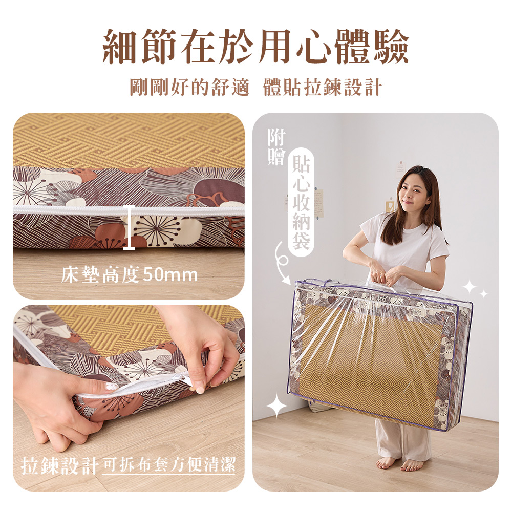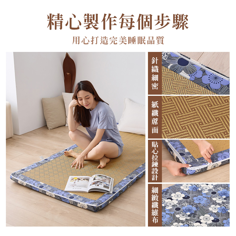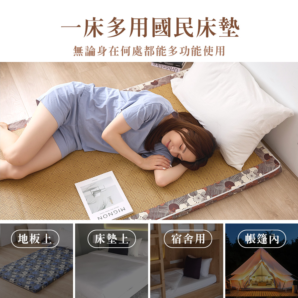 【金大器】日和風摺疊床墊-花舞藍 三折床墊 塌塌米床墊 透氣床墊 涼蓆床墊 露營墊 學生住宿 租屋族 車用床墊