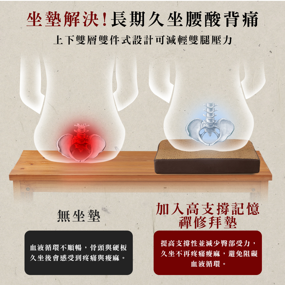 -符合工學的禪坐墊,讓您支撐腰部、臀部