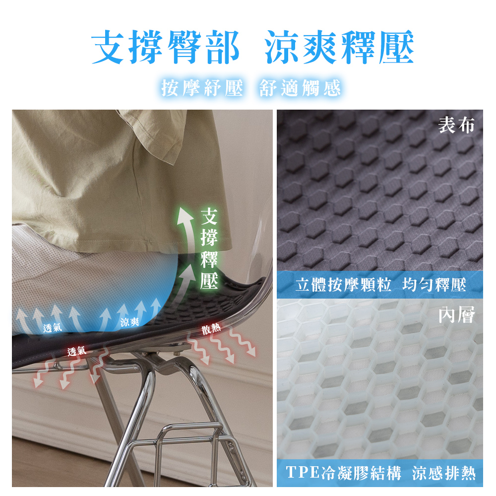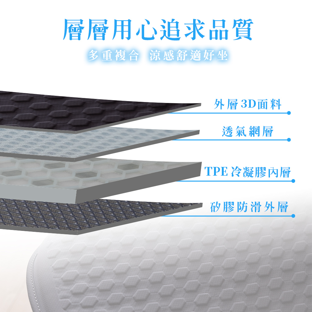 【金大器】3D立體凝膠沁涼舒壓坐墊 48x50cm 降溫冰坐墊 冷凝坐墊 果凍凝膠坐墊 坐椅墊 車坐墊 坐墊