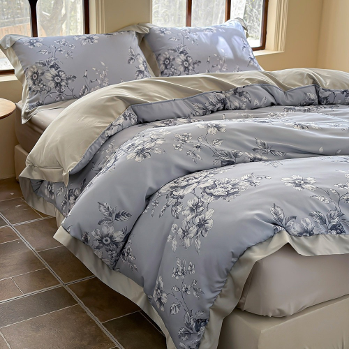 兩用被:正面(A版)有花色+反面(B版)素色+素色拼接