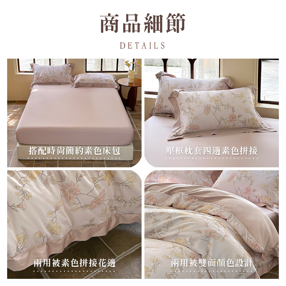 雙人規格有四件:床包*1/兩用被套*1/壓框枕套*2