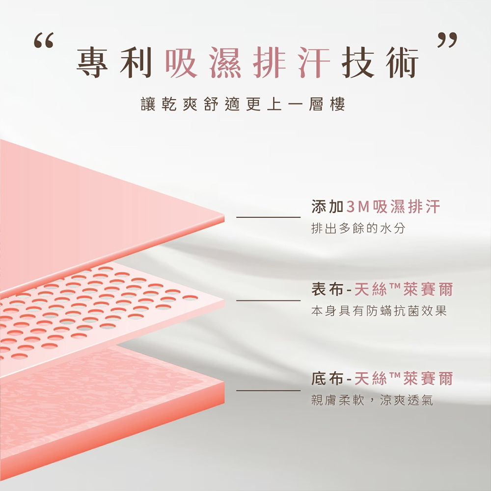 - 50%萊賽爾纖維+50%聚脂纖維(3M吸濕排汗抗菌藥劑)