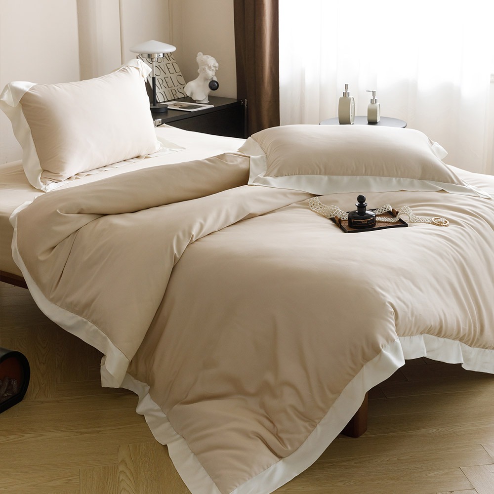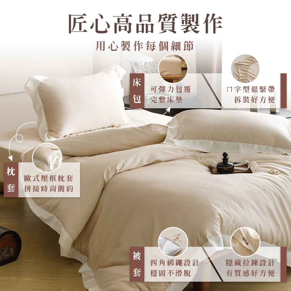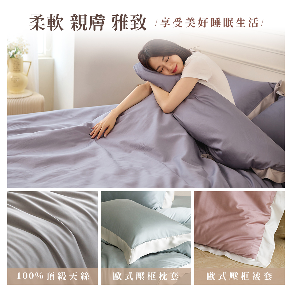 【金大器】頂級法式拼接100sTENCEL 天絲床包四件組 床寢 兩用被 專櫃床包 枕套 萊賽爾纖維 100支天絲