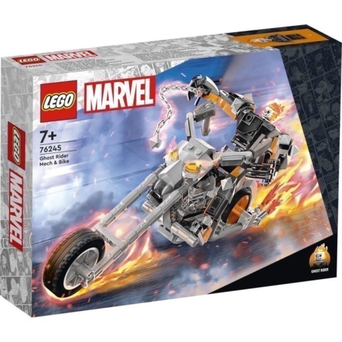 用這款大型 LEGO® Marvel Ghost Rider Mech & Bike(76245)讓 7 歲以上超級英雄粉絲享受大型摩托車冒險。