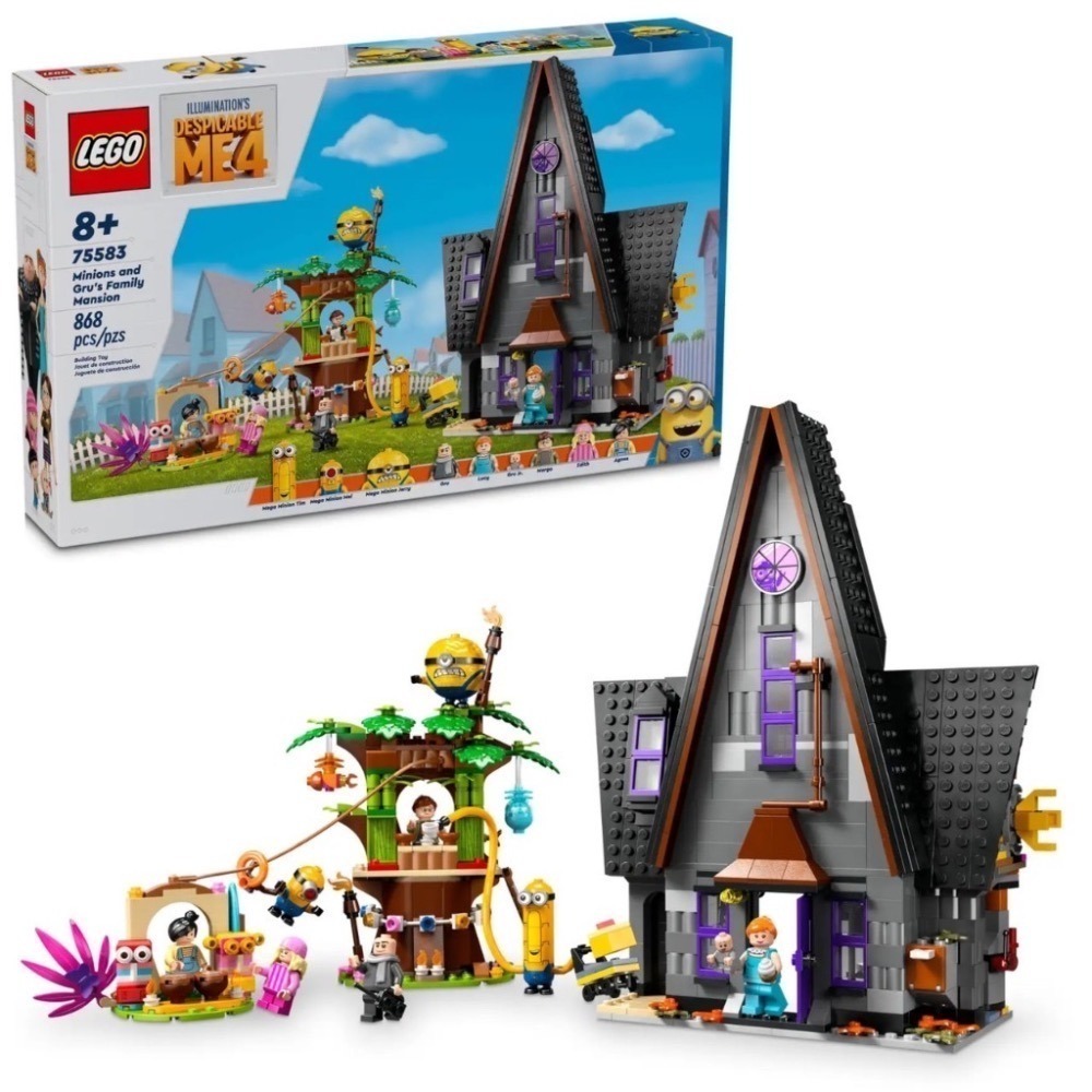 • 玩具房屋與樹屋盒組-樂高® 神偷奶爸 4 小小兵和格魯家住宅兒童盒組有許多忠實還原的電影細節與角色,適合 8 歲以上女孩和男孩