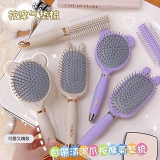 自帶清潔爪按摩氣墊梳(卡其小熊圓梳)