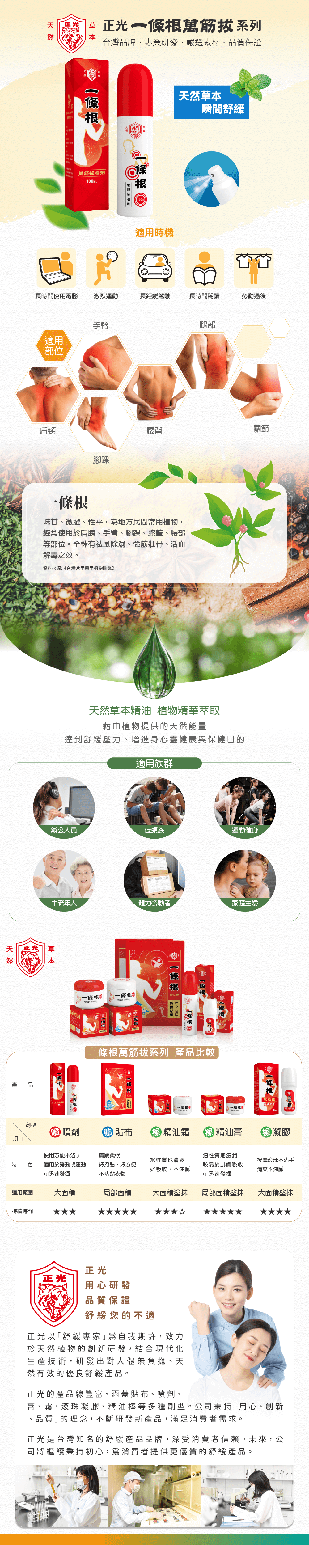 商品成份:一條根萃取物、冇骨消萃取物、海芙蓉萃取物、黃花鐵線蓮萃取物、薄荷精油
