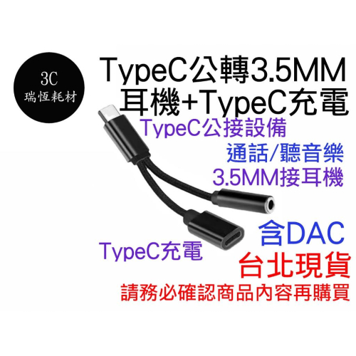 typec 公 轉 3.5mm 母 轉 Type-C 母 充電 轉接線 二合一 3.5mm 轉 typec 手機接耳機