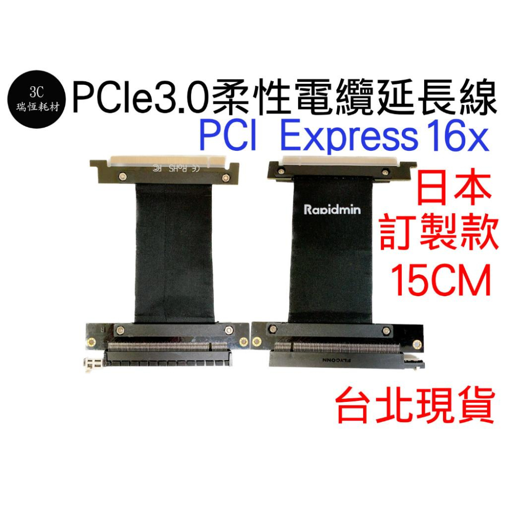 PCI Express PCIe 3.0 16x 柔性電纜延長線 15cm 日本 Rapidmin 直立式 顯卡 延長線