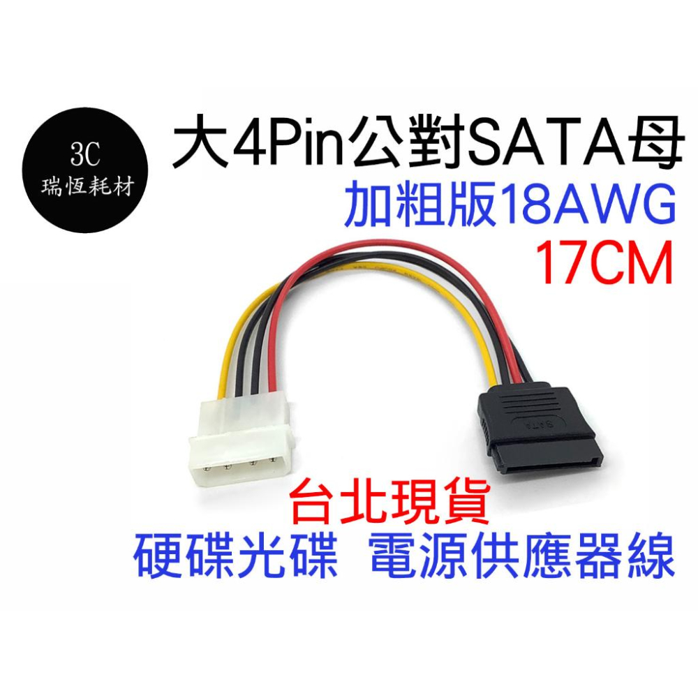 大4Pin 轉 SATA 電源供應器 電源線 大4P 公 SATA 母 17cm 18AWG 一對一 轉接線 硬碟 光碟