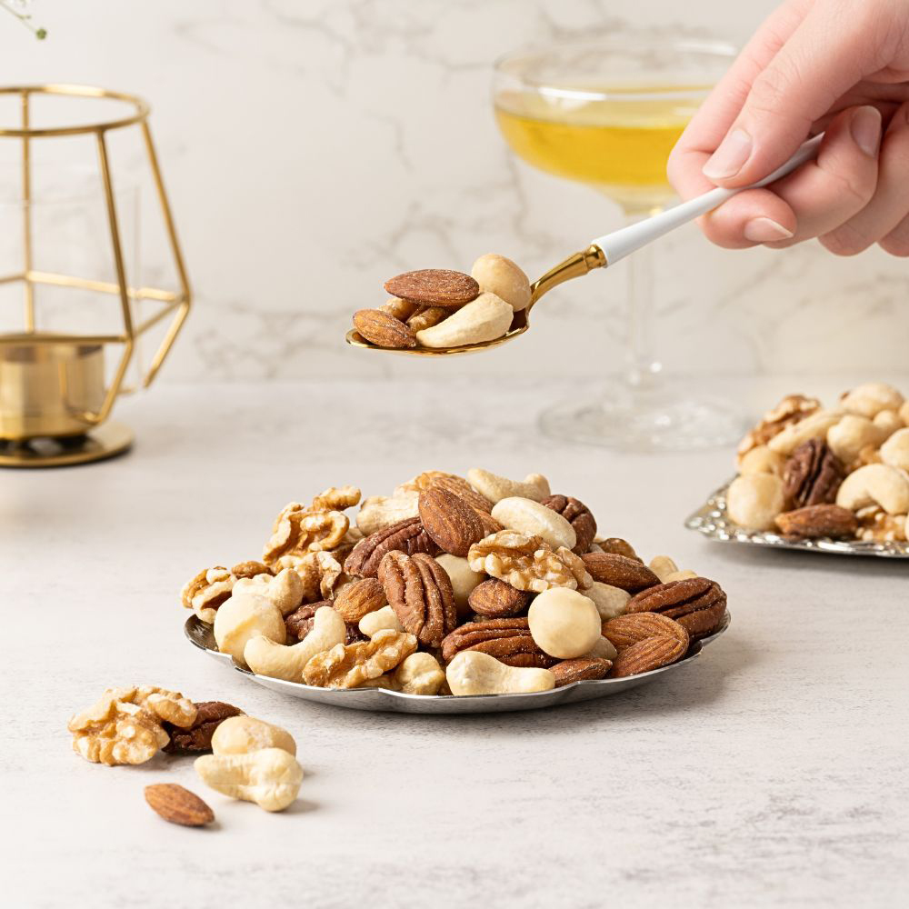 原料採用自世界知名堅果品牌:安迪食品公司(Andi Food)的頂級腰果、河橡園公司(River Oak Orchards)的精選核桃、農家公司(Farm House)的高品質夏威夷豆、綠谷胡桃公司(Green Valley Pecan)的優質胡桃,及藍鑽公司(Blue Diamond)的特級杏仁粒,品質均獲得國際認證,非基因改造且零農藥殘留。