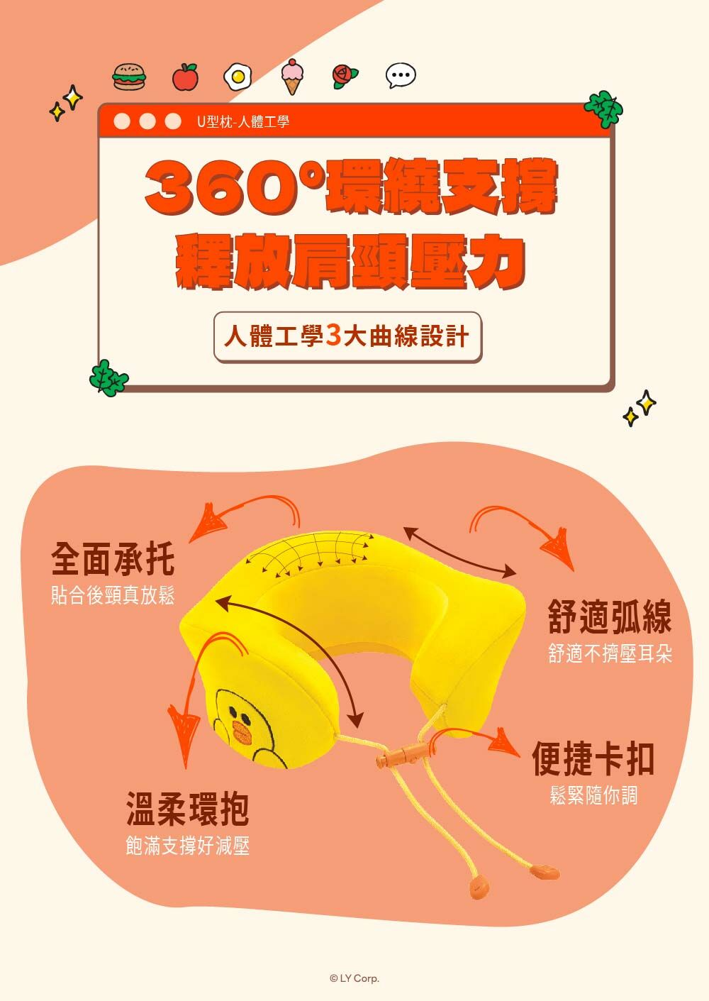 OGAWA LINE FRIENDS聯名 U型枕 OG2612 (出國旅行、旅行枕、飛機枕、熊大枕、莎莉枕、多用途護頸枕)