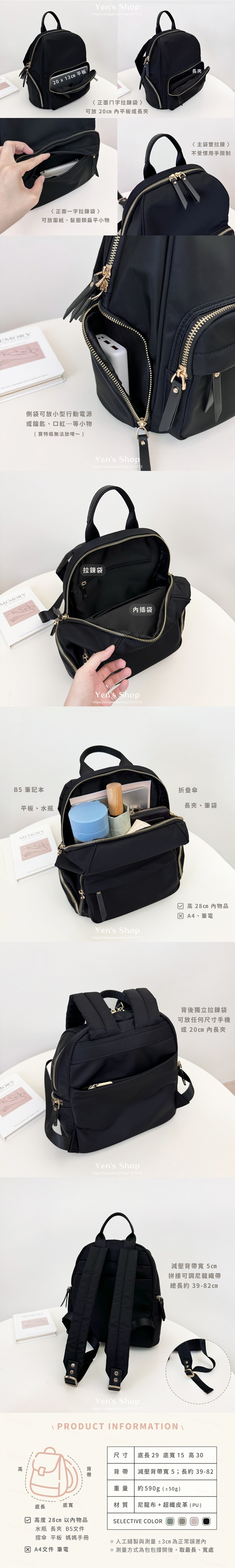 現貨🔥防潑水多口袋減壓尼龍後背包|雙拉鍊設計|日常必備|輕便耐用